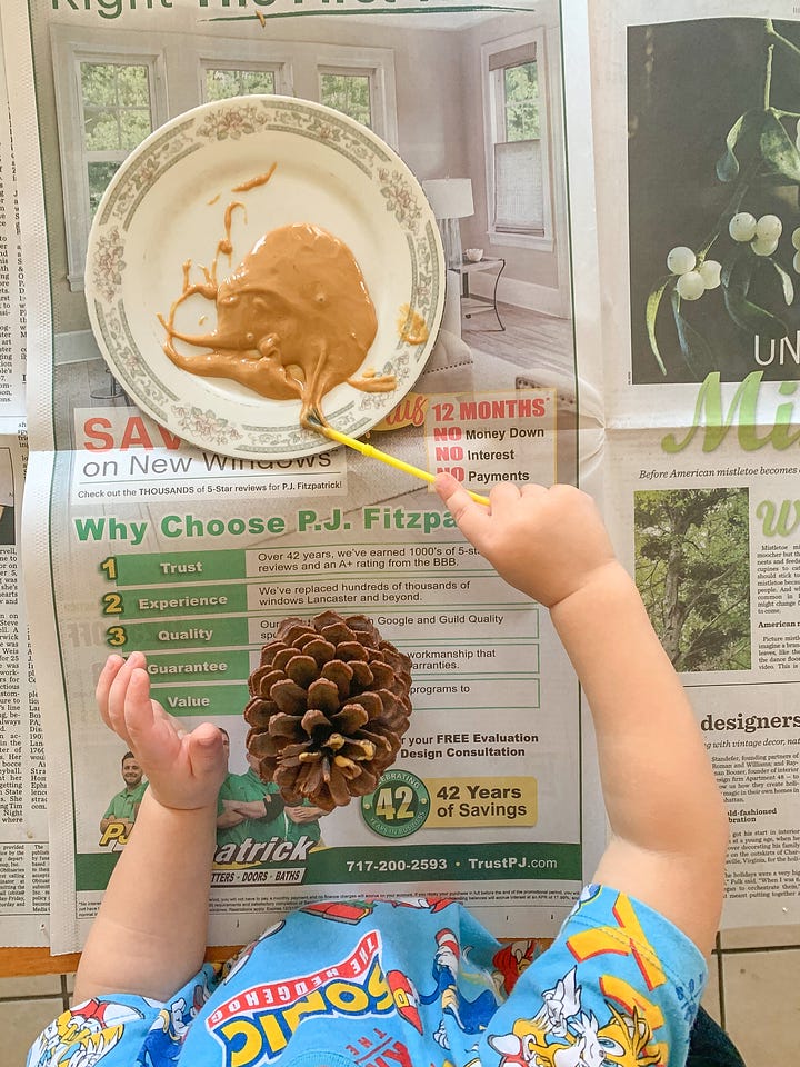 December 9- Make pinecone bird feeders. One of our favorite winter crafts to do during Advent is this one!